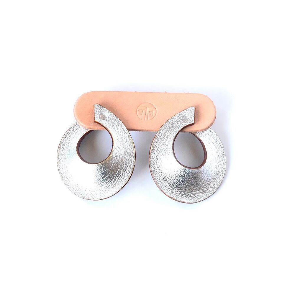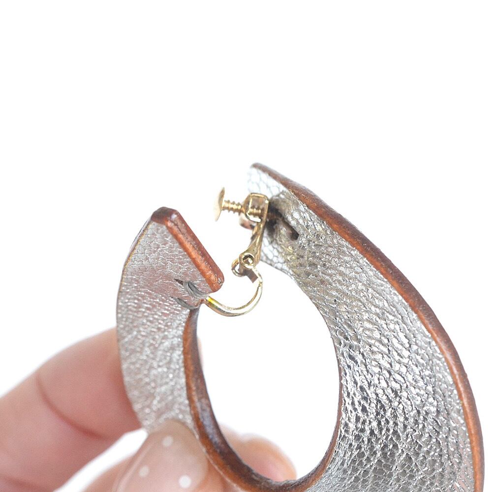 金属アレルギーが出にくいチタン製のポストをレザーに埋め込むことで安定感が増し、耳に触れる金属はチタンのみになるように作っています。