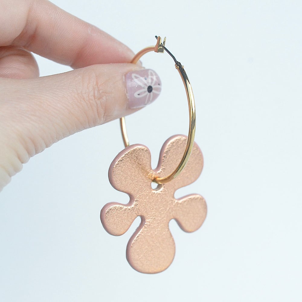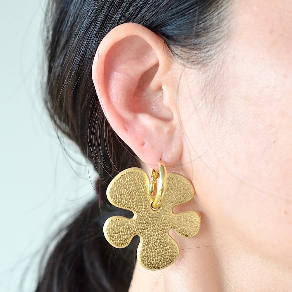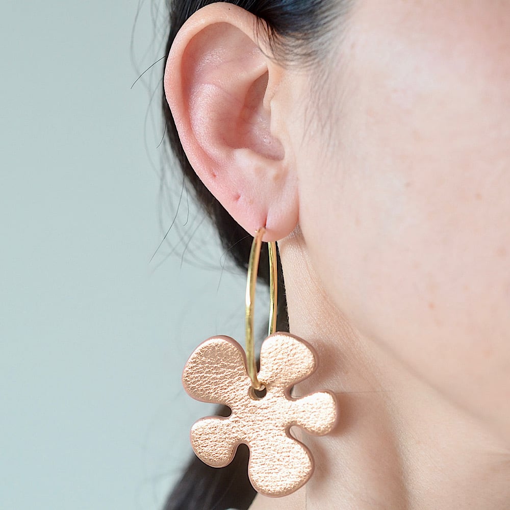 お花のレザー部分は取り外し可能なので、外してシンプルなフープピアスとしてもお使いいただける2WAYタイプです。