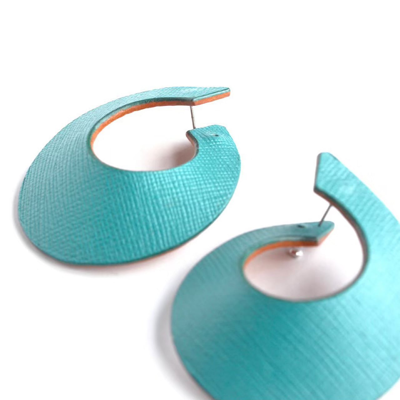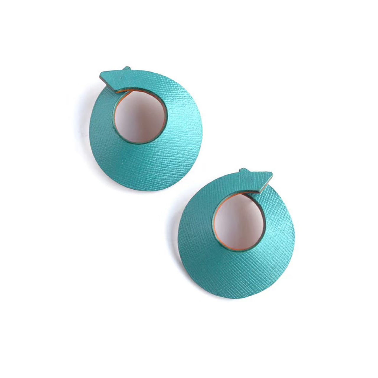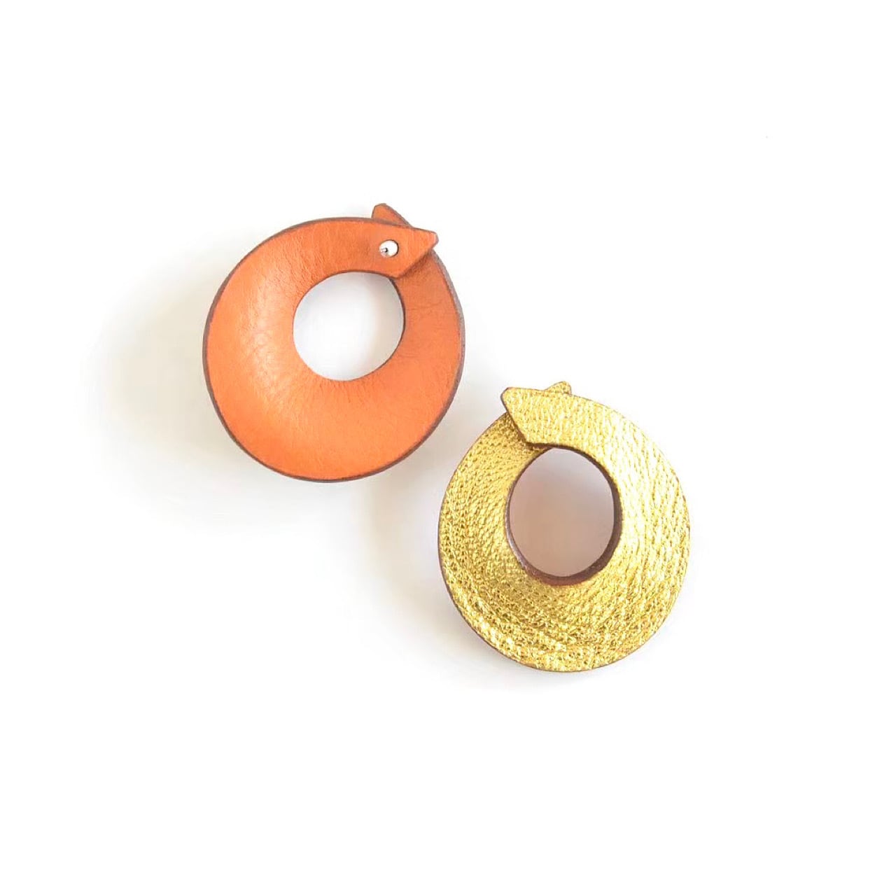 金属アレルギーが出にくいチタン製のポストをレザーに埋め込むことで安定感が増し、耳に触れる金属はチタンのみになるように作っています。