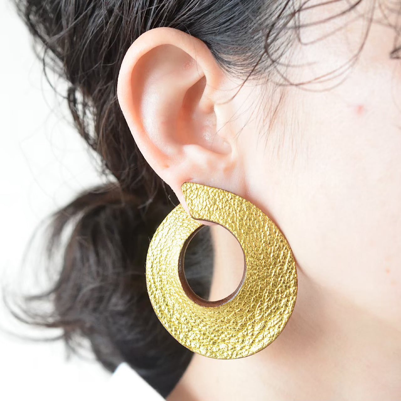 こちらのゴールドカラーは手揉みでシボをつけ、ピアスの形にした後に反り返らせる加工をしています。