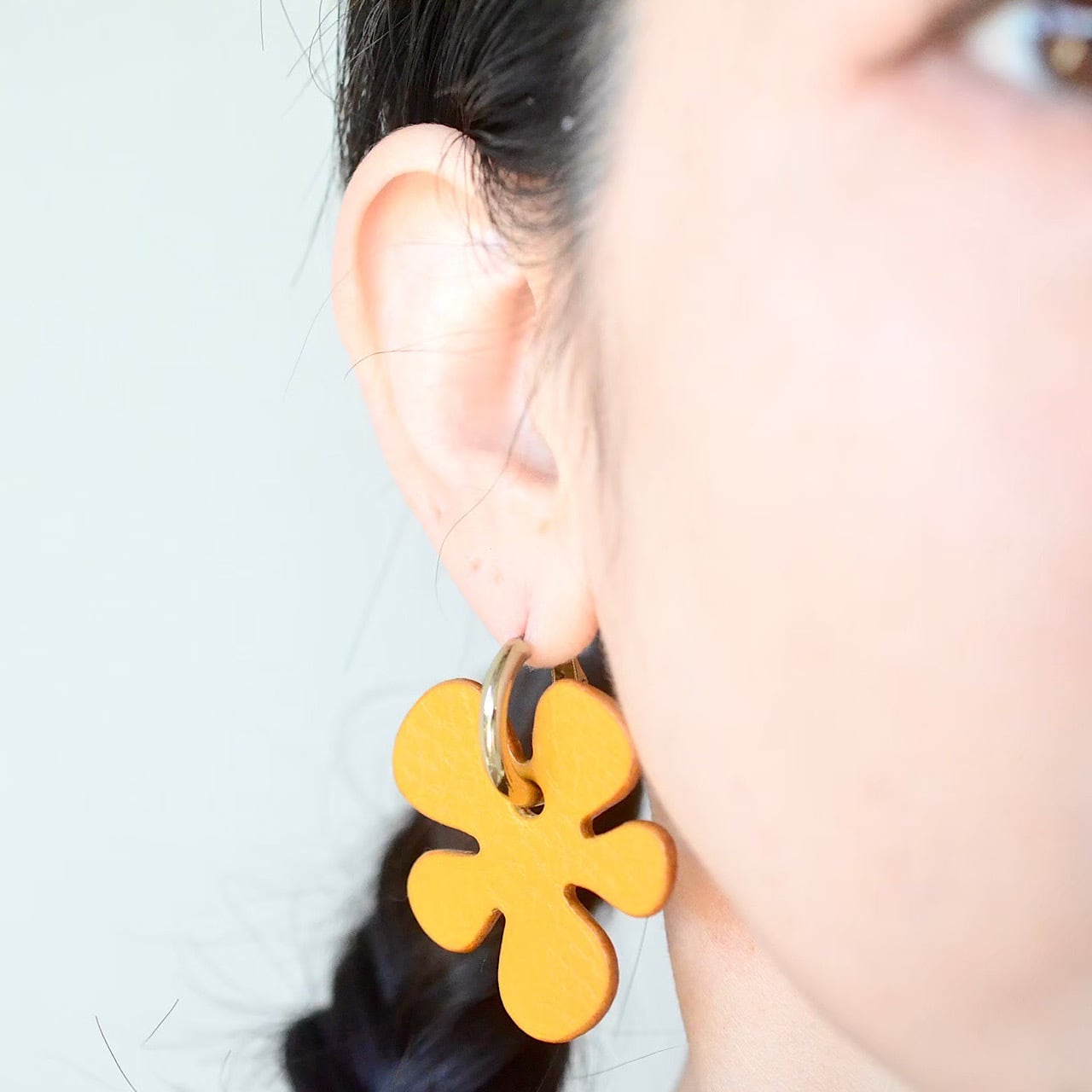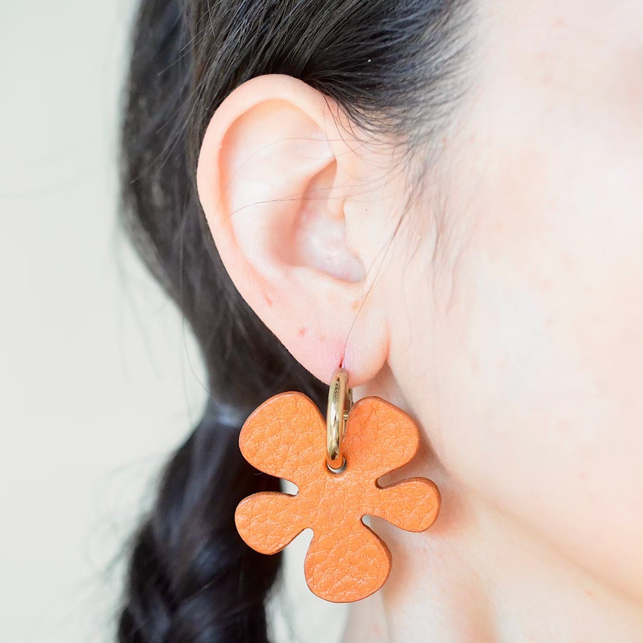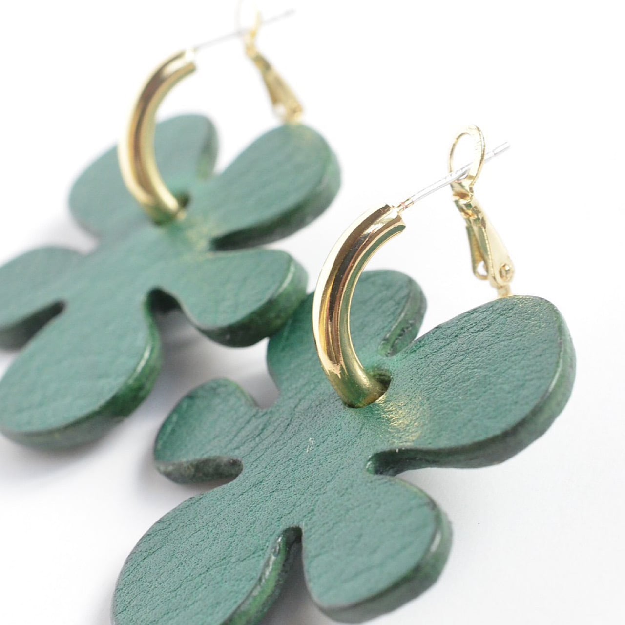 お花の形に切り出したレザーを2枚貼り合わせているので、適度な厚みがあります。