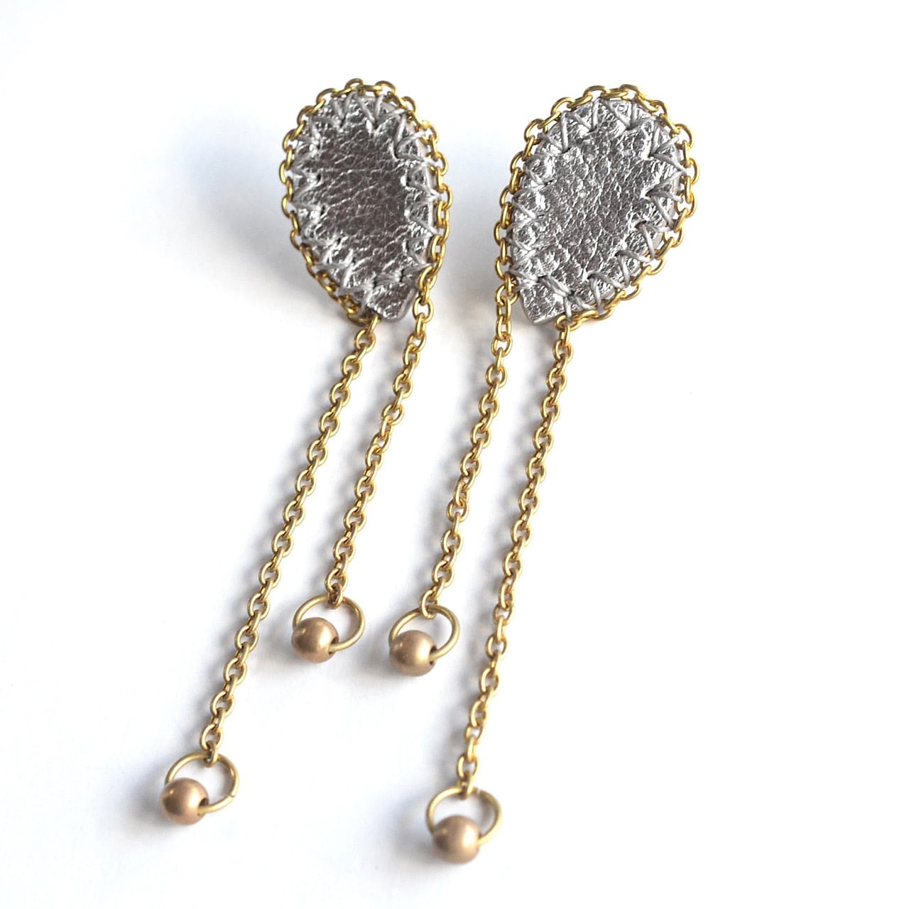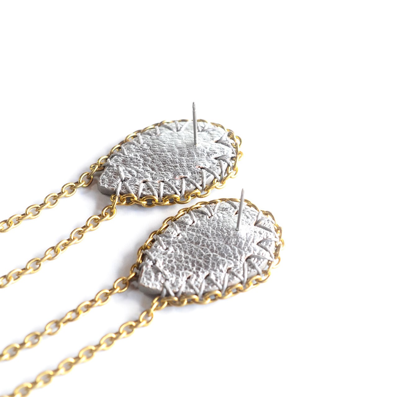 ポストは革に埋め込んでいますので、耳に触れる金属はチタンのみです。